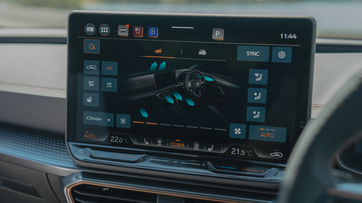 VAG’s silly slider adjustment for aircon temperature persists, but at least they’re illuminated in the Cupra format. And while the media format’s menuing isn’t the last word in intuitive simplicity, this version of the operating system presents handy assignable shortcut icons on the homescreen.