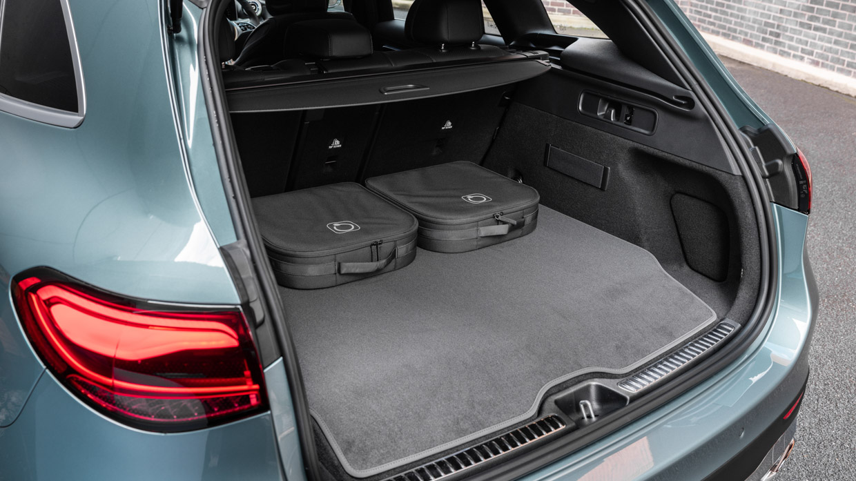 By adding a 25kWh battery pack over the rear axle, there has been some intrusion to the boot of the GLC so the floor is no longer entirely flat and there is no underfloor storage. In terms of overall size, however, it measures 590L vs 620L in the GLC 300.