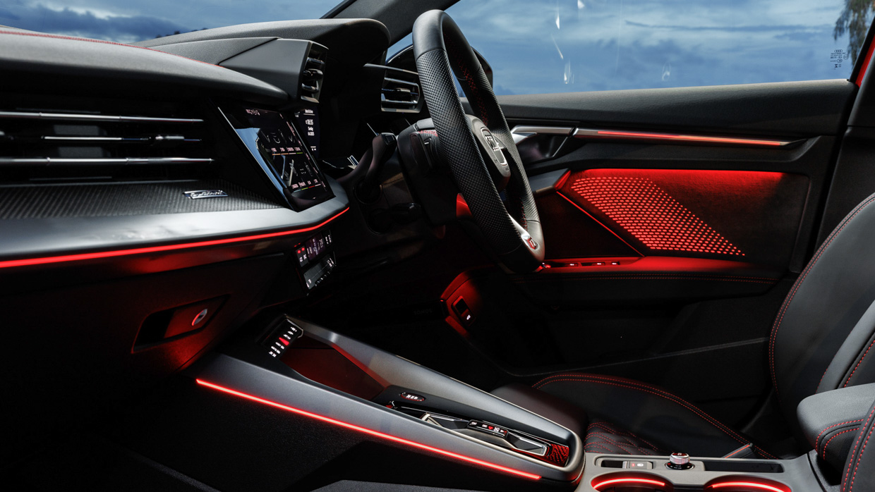 Material choice is varied and well presented in most cabin areas, with a lift above A3 stock particularly noticeable in the perforated door panel and rather elaborate ambient light array.